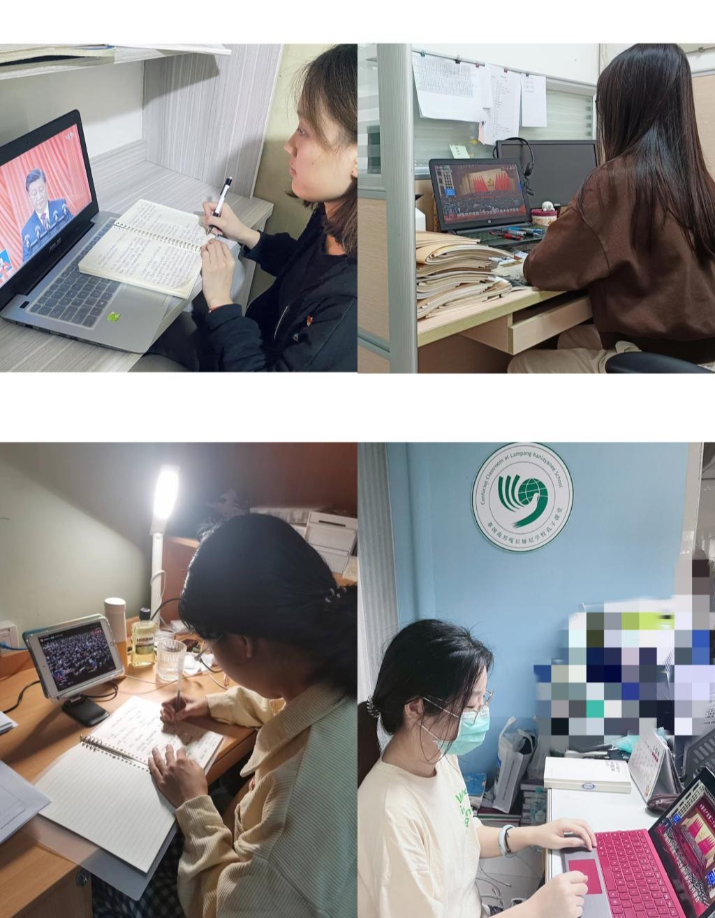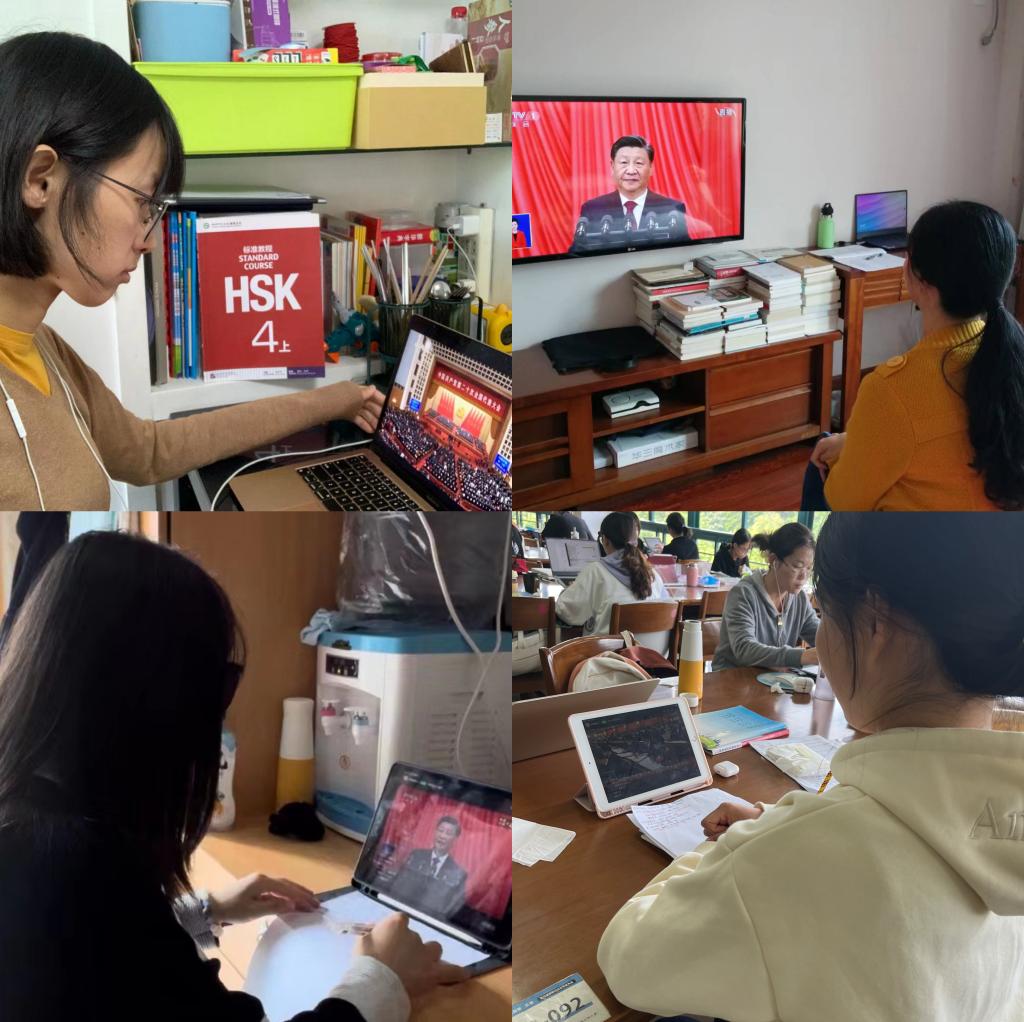 邵莉敏老师看完开幕会后第一时间分享了自己的感受。2020级研究生党员蒋雨馨同学说:“作为汉语国际教育专业的研究生,我们肩负着传播汉语,传播中国文化,让世界了解中国的重担。在担任语合中心赴泰汉教志愿者的这段时间里,我将积极积累教学经验,收集教学数据,做好自己的本职工作,平衡好教学与自己的学业压力,不负青春!志愿者教师作为中国文化使者,将汉语带到世界各地,教更多的外国朋友快速地学习汉语,了解中国文化。”,看完近2小时的开幕会直播学院师生纷纷表示,要把对学习宣传党的二十大精神融于到平时的工作学习中去,发挥我们的专业优势,唱响思政舆论强音。