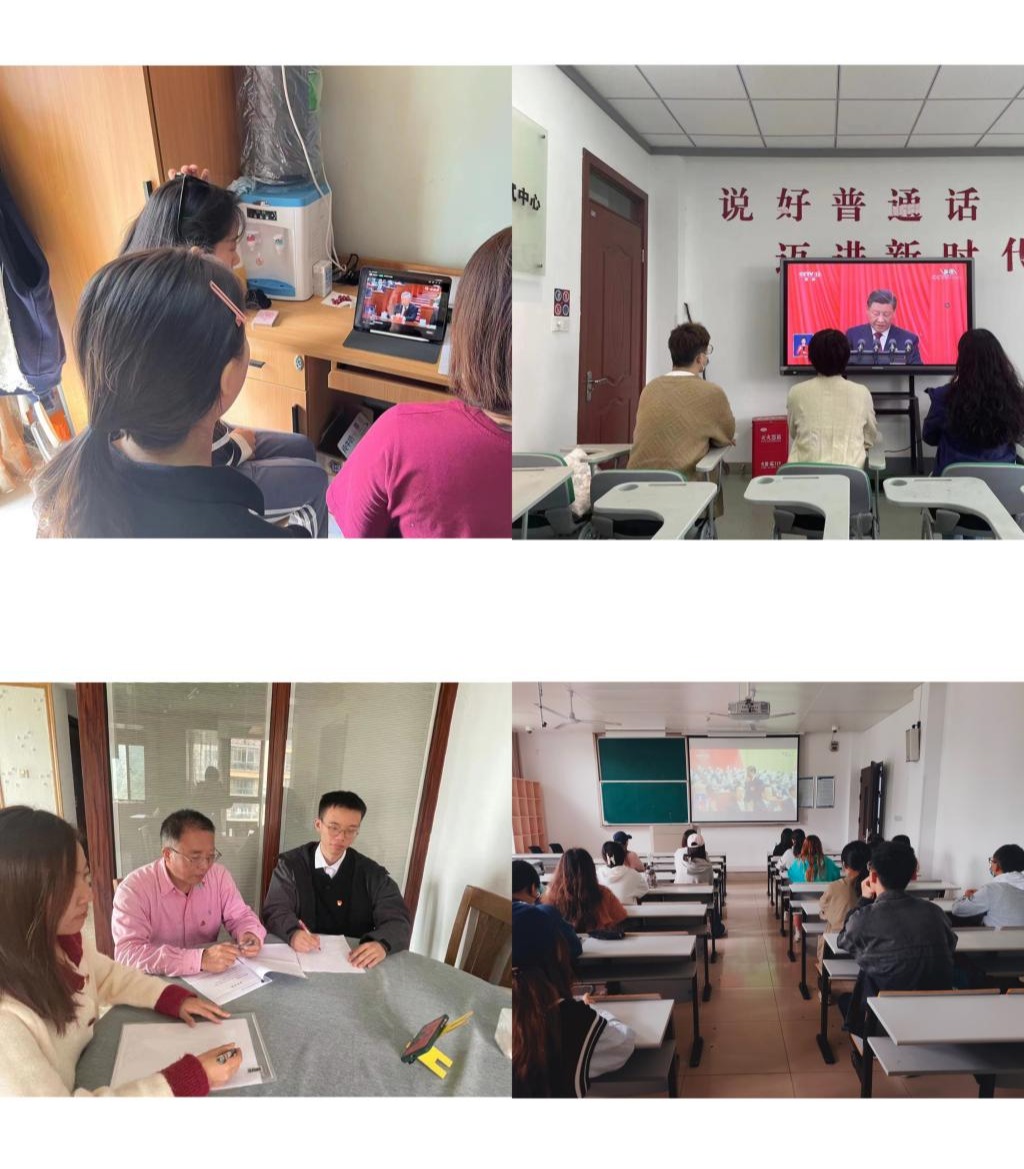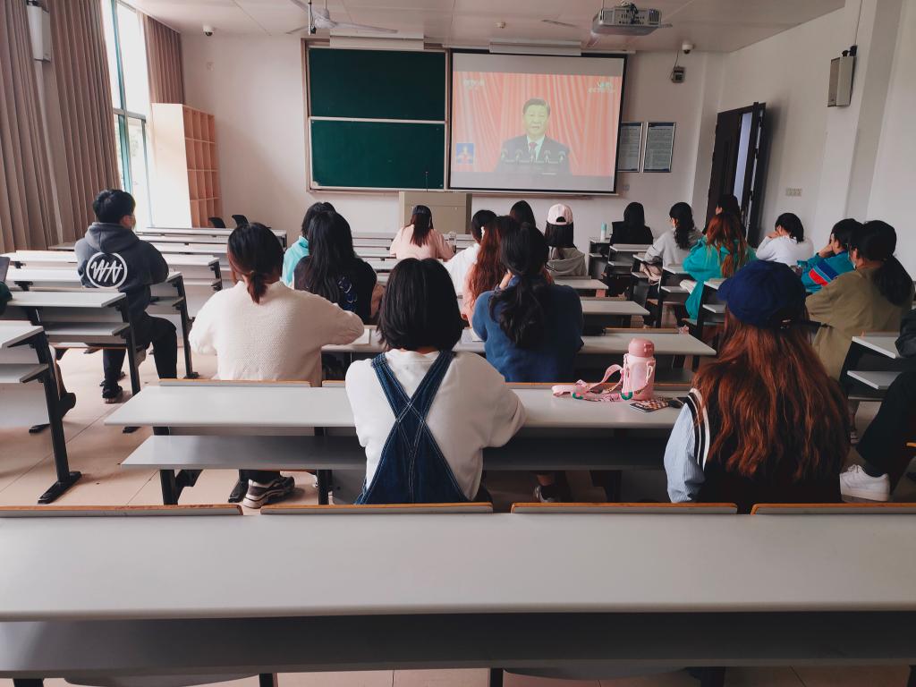 党委组织学院党员、入党积极分子在小和山校区A1-101一同观看中国共产党第二十次全国代表大会开幕会讲话。